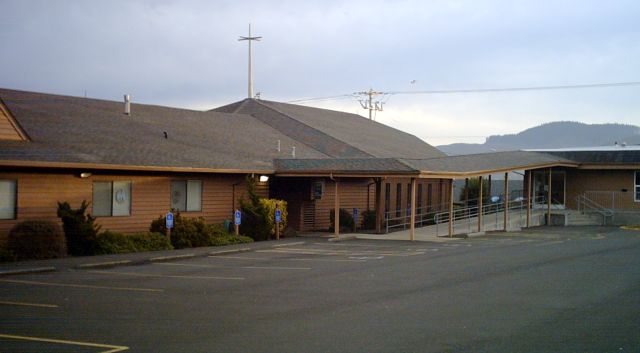 ![]() If you are coming from the North, you might see the Sign and the Sanctuary, turn right on to SW 13th. The Sanctuary can hold about 300. | ![]() And continue to the small parking lot, (there are 10 spots here), or continue to the larger parking area. (see below) |